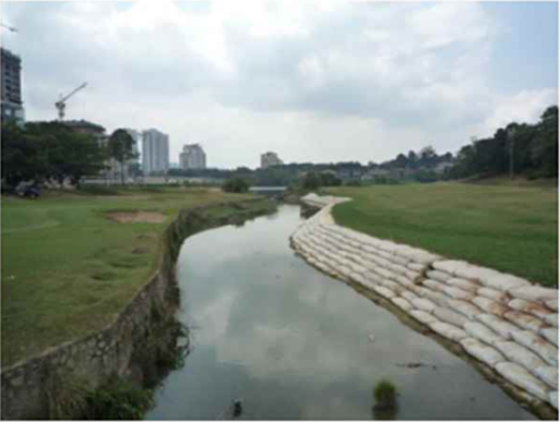 Dọc theo 2 bờ suối, một bên bờ đất tự nhiên đã bị xói lở nhiều năm. Các cơn mưa lớn nặng hạt thường xuyên càng gây nguy hiểm thêm đến tỉnh trạng ổn định của đoạn bờ này. Bên cạnh việc phải tìm ra giải pháp kết cấu đảm về mặt kỹ thuật của việc chống xói lở, yếu tố thẩm mỹ, thân thiện với môi trường cũng rất được quan tâm vì vị trí sạt lở nằm ngay khu vực ra vào của câu lạc bộ. Giải pháp gia cường mái dốc bằng hệ thống kè mềm Soft Rock của Naue Asia được đề xuất.