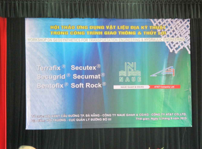 Công ty AT&T và NAUE GmbH phối hợp cùng Hội KHKT Cầu đường TP. Đà Nẵng tổ chức buổi hội thảo với chuyên đề : Ứng dụng vật liệu địa kỹ thuật trong công trình giao thông và thủy lợi vào ngày 5 tháng 9 năm 2015 tại Thành phố Đà Nẵng.