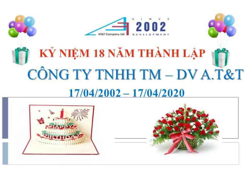 Hôm nay ngày 17/04/2019, Công Ty TNHH TM-DV A.T&T vui mừng kỷ niệm 17 năm thành lập công ty 17/04/2002 – 17/04/2019. Giám đốc công ty A.T&T đã nhấn mạnh những thành tựu đạt được của công ty sau 17 năm, và không quên cảm ơn sự hợp tác, giúp đỡ của các đối tác,…