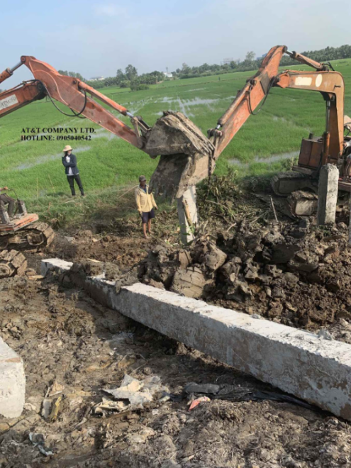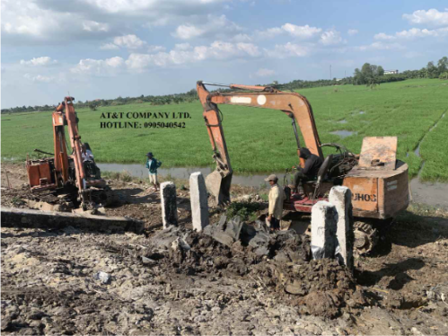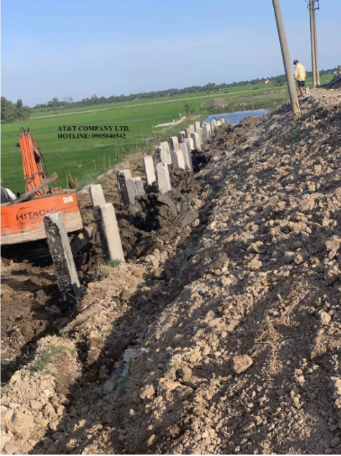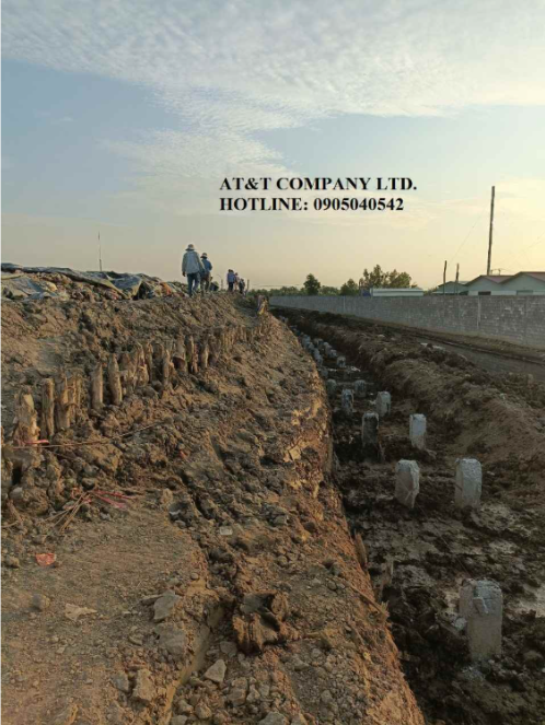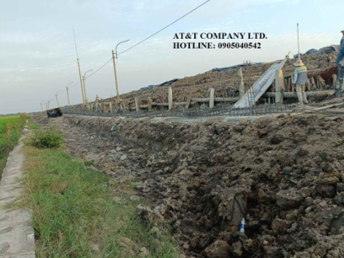 AT&T đã triển khai thi công gói thầu số 1: “Thi công Kè bê tông chắn nước rỉ rác bảo vệ tránh sạt lở bờ bao và phủ bạt ô chôn lấp của bãi chôn lấp rác hợp vệ sinh số 3 thuộc công trình Bãi rác Hòa Phú”