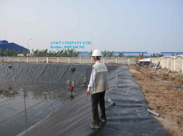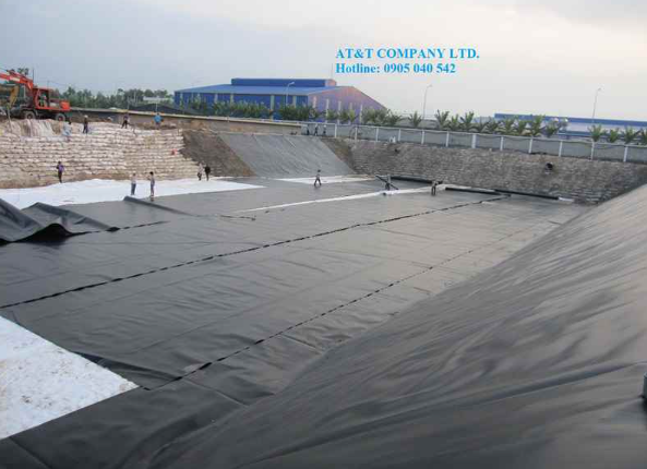 Kết thúc hạng mục dùng vải địa kỹ thuật để gia cố nền và bao địa Soft Rock để tạo taluy. AT&T tiếp tục cung cấp & thi công hàn màng chống thấm HDPE cho hạng mục chống thấm hồ chứa nước thô.